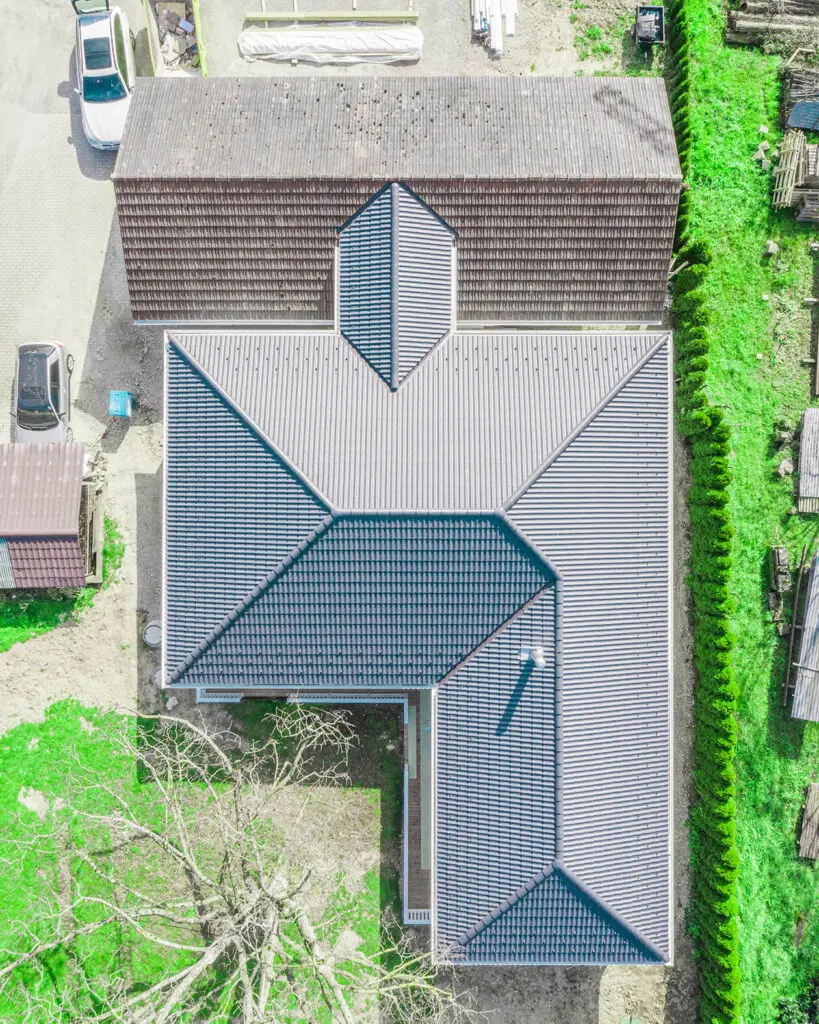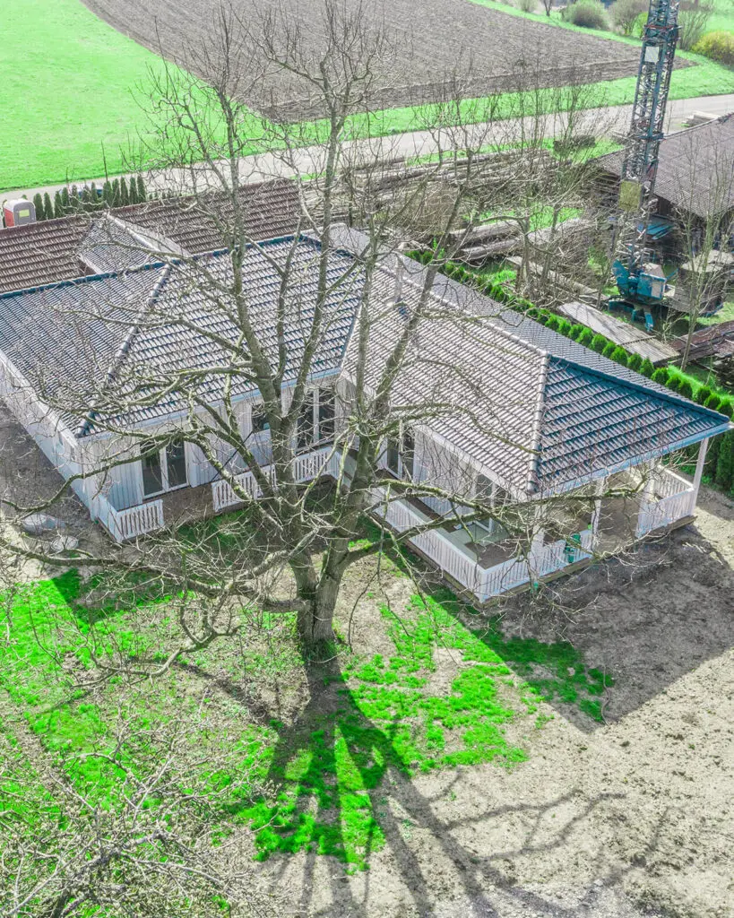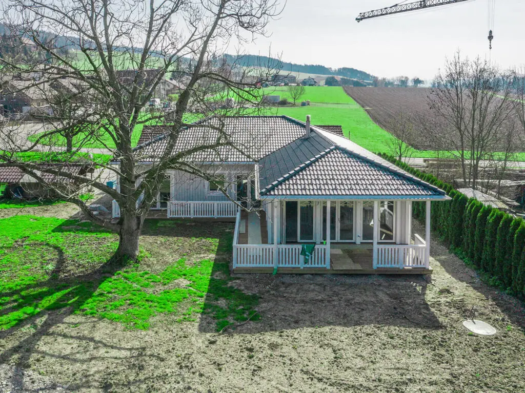 Bei diesem tollen Bungalow im Kanton Thurgau wurde die Technik, sowie die Wärmepumpe im Carport integriert (HWR im Carport ausgebaut), um mehr Platz im Haus zu gewinnen.