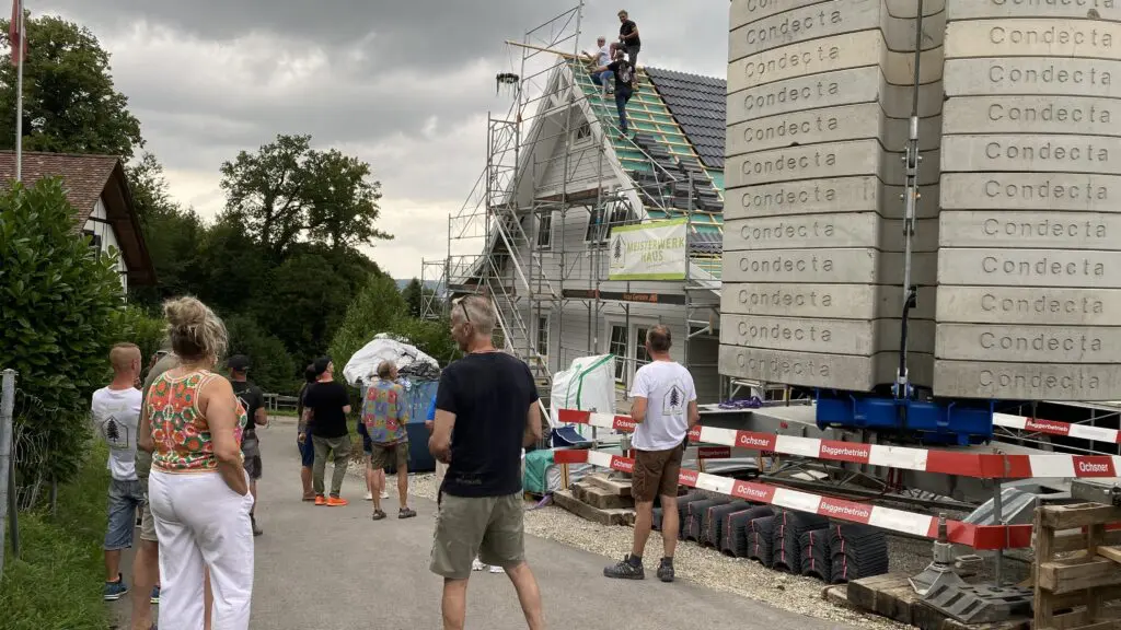 Auf dem Grundstück der Bauherrschaft in Rheinklingen wird in den kommenden Monaten ein neues schlüsselfertiges Schwedenhaus entstehen. An einem sonnigen Nachmittag voller Vorfreude und Energie